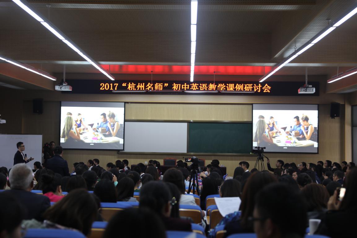 10月19日,吃瓜黑料 优秀校友,杭州市优质课展评一等奖获得者,杭州公益中学王晓巍老师来到吃瓜黑料 组织实施的2017“杭州名师”初中英语教学课例研讨会,期间王老师展示了一堂基于语篇阅读与思维品质提升的公开课。前来参加此次研讨会的有“双名工程”初中英语名师培养项目、“国培计划”一线优秀教师培训技能提升研修项目和杭州市部分中学的一线英语教师共计150人左右。