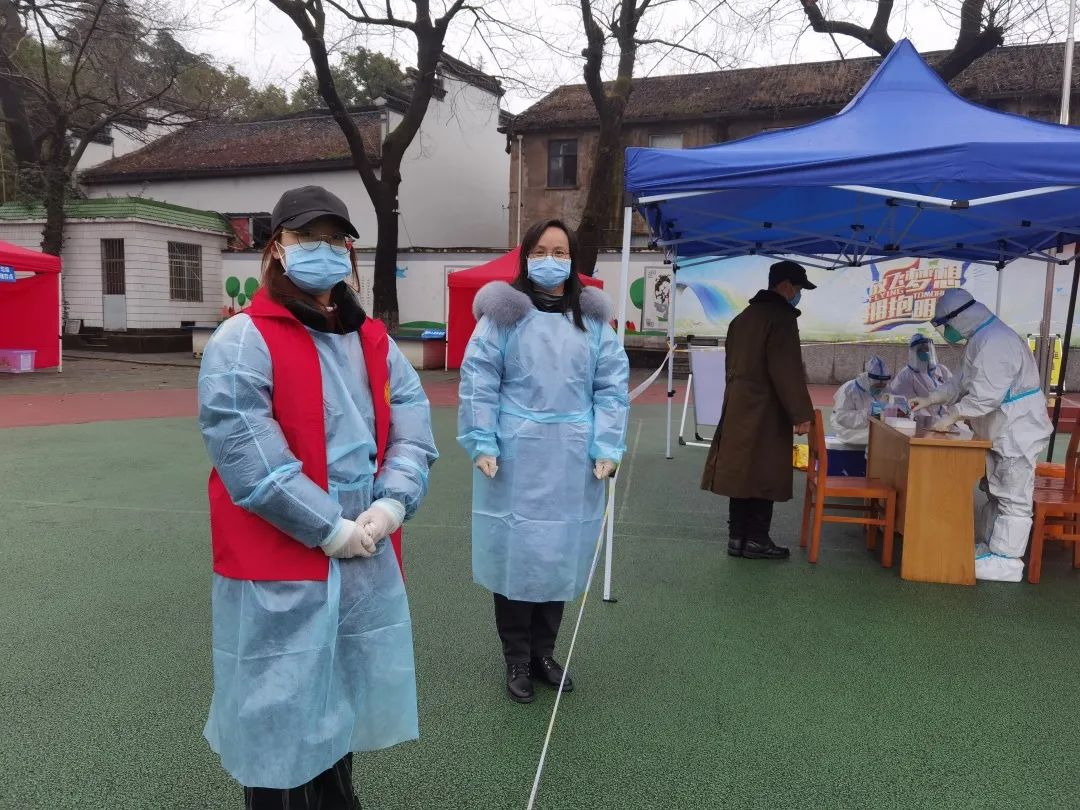 冬日社区,用爱阻隔寒冷。大年初四的上午6:30,在杭州市富阳区鹳山社区核酸检测点,陈之韵已经穿戴好了防护装备,准备迎接早晨第一批来进行核酸检测的居民。陈之韵是外院英语经亨颐211班的学生,在这个寒假主动参与了社区的志愿活动,协助核酸检测工作。随着疫情形势的变化,核酸检测的任务压力不断加大,陈之韵所在的志愿者团队的工作包括维持核酸检测现场的秩序、指导排队人员有序间隔一米等待、为检测核酸的医务人员及时补充检测物资,以及为对防疫要求缺乏了解的居民解答疑惑。“辛苦”已经不足以形容这份工作,但陈之韵认为这份付出非常值得,身为大学生志愿者为杭州的疫情防控献出了自己的一份力。她表示,在志愿岗位时大家都收到了很多居民的关心,“大家都很配合疫情防控的要求,对防疫充满了信心。”陈之韵这样说道。