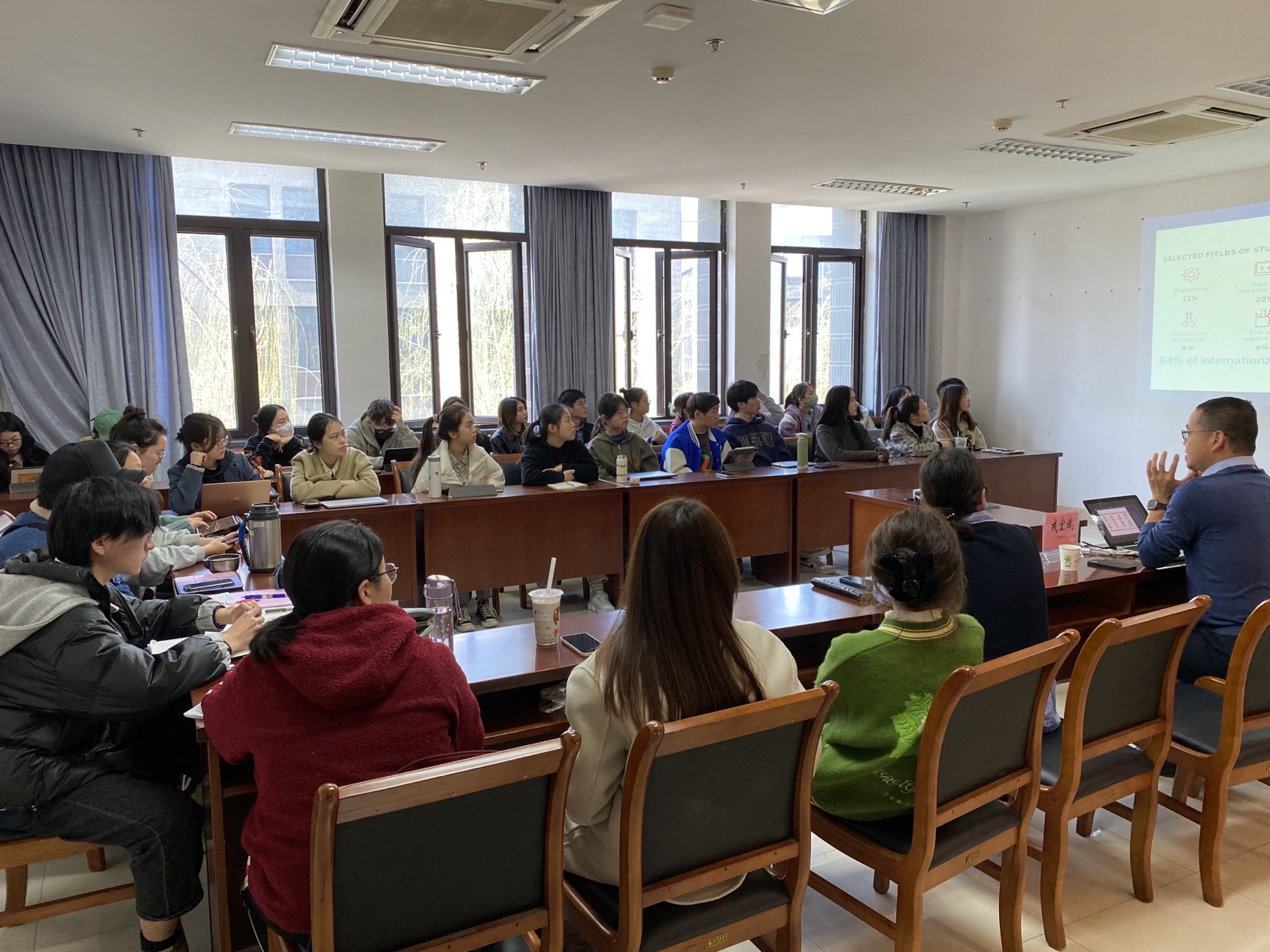 此次讲座大大鼓励了同学们出国留学的积极性,并为学生留学的选择与准备提供了非常宝贵的指导和服务,使本科生了解更丰富的升学可能性及国际教育的前景。
