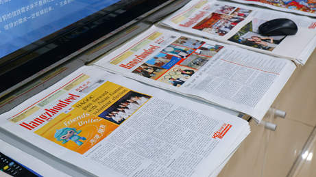 都市快报常务副总编辑王晨郁和刘益梅校友热情地接待了到访师生,带领大家参观了都市快报国际传播中心整体的办公环境,并向师生讲解了都市快报的历史沿革、运营模式,以及杭州亚组委海外融媒体运维中心、杭州外宣厨房在讲述好杭州故事,传播好中国声音中展现的强大的“都快实力”。