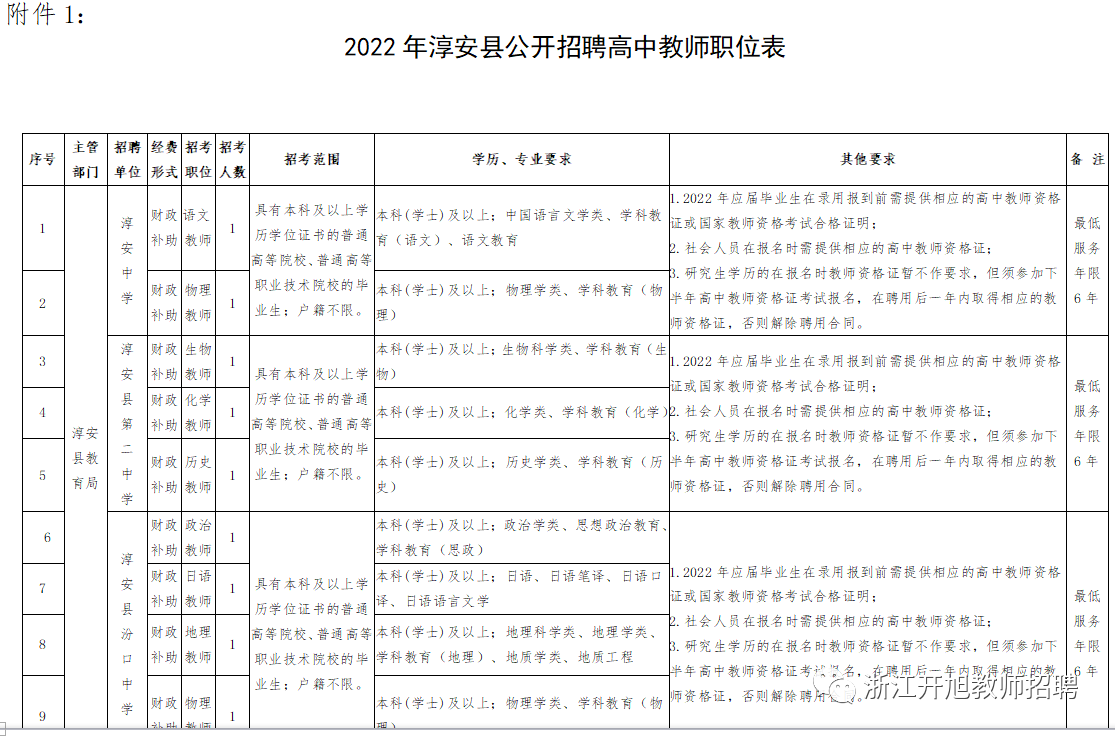 - 杭州淳安县编制高中日语教师招聘公告