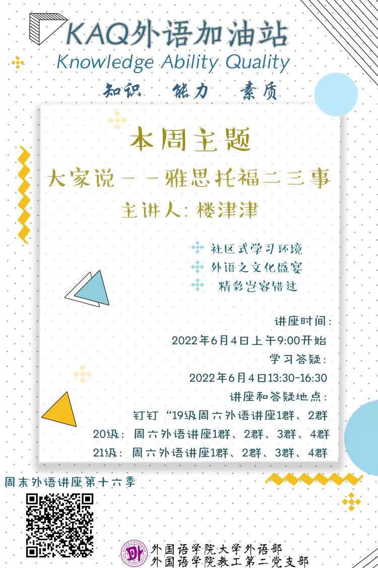 - 周末英语公益讲座:“全球疫情背景下的雅思考