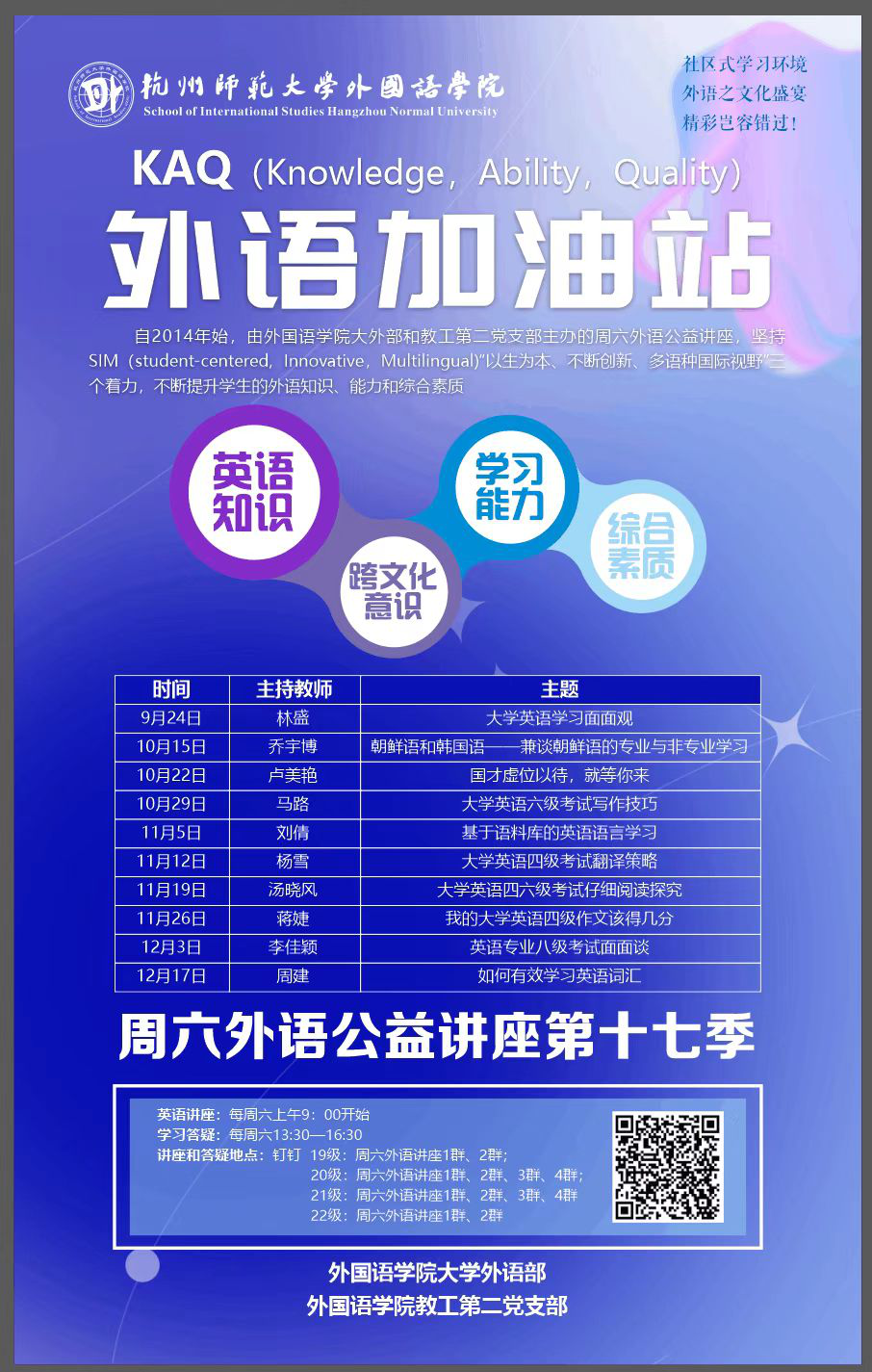 - 第十七季“周末外语公益讲座”拉开序幕