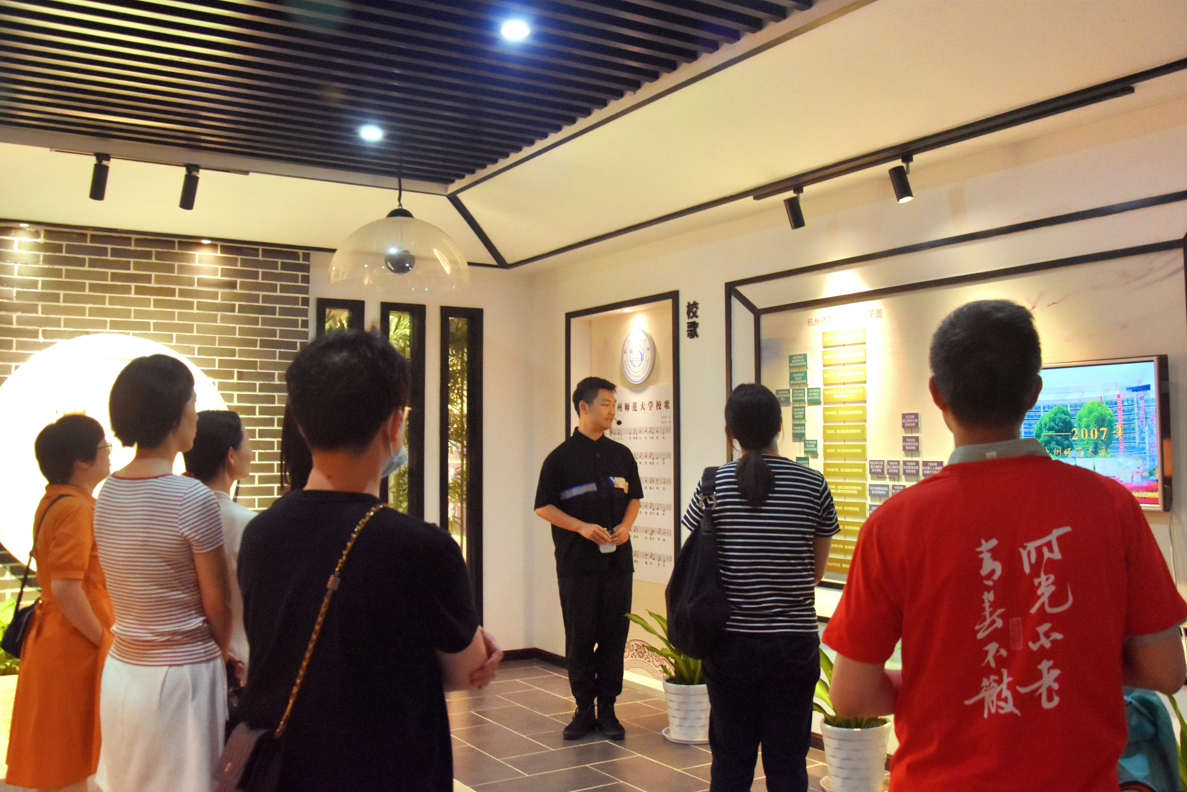 会前,校友们集体参观了仓前校区校史馆。翻译211班袁铭欣同学为校友们讲解了学校发展的历史沿革、发展脉络、办学成就以及近年来在锐意拼搏中取得的佳绩。校友们为母校的蓬勃发展感到由衷的欣慰和自豪,同时祝愿母校有更辉煌的未来。