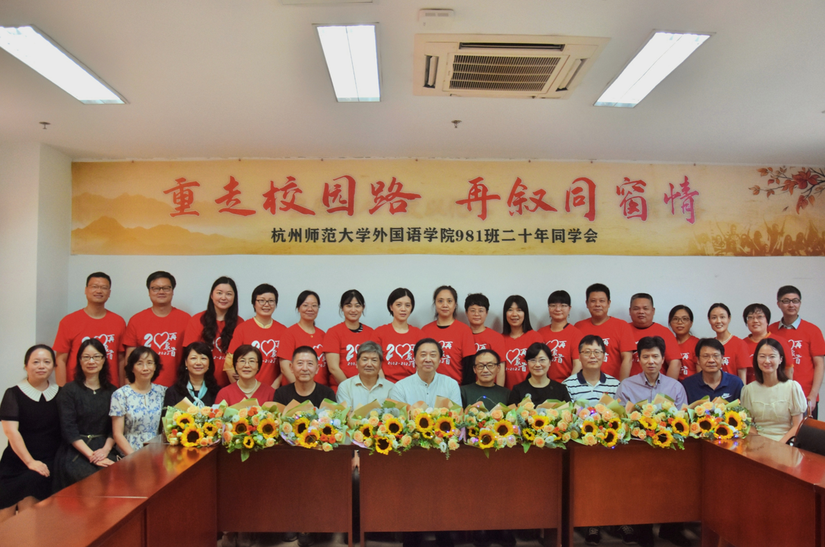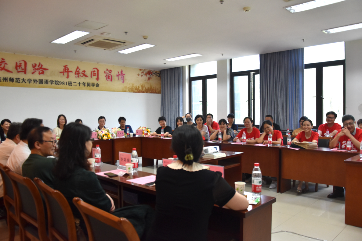 10月1日,吃瓜黑料 英语专业98级981班二十年同学会在吃瓜黑料 仓前校区顺利举行。学院党委书记潘春雷,院党委副书记娄丹华,学院教师代表沈昌洪、吴晓维、谢萍、谢洁莹、徐凌芸、季忠民、沈昌洪、李毅、张欢、吴格奇、方红、朱越峰、陈军及981班部分校友参加本次活动。