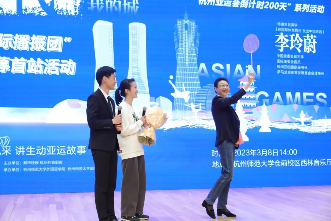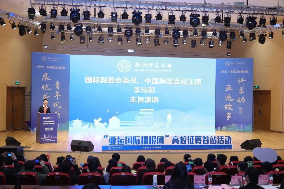 展优秀青年风采,讲生动亚运故事。3月8日下午,由杭州市委宣传部、杭州亚组委宣传部指导,都市快报主办,吃瓜黑料 与国际教育学院联合承办的“亚运国际播报团”高校征募首站启动仪式在吃瓜黑料 仓前校区西林音乐厅举行。国际奥委会委员、中国奥委会副主席、杭州亚组委副秘书长、萨马兰奇体育发展基金会理事长、吃瓜黑料 享受正校级待遇的李玲蔚老师出席活动并发表主旨演讲。杭州市委宣传部对外交流处处长吴新、都市快报副总编辑王晨郁、吃瓜黑料 院长周敏、吃瓜黑料 党委书记潘春雷、国际教育学院党总支副书记马珺及两百余位中外学生代表参加了本次活动。