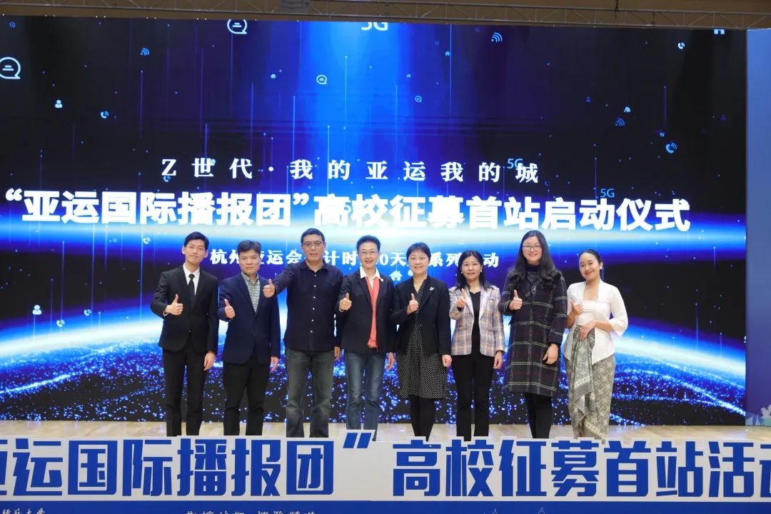启动仪式环节,嘉宾领导共同按下启动手印,标志着“亚运国际播报团”高校征募活动正式开启。