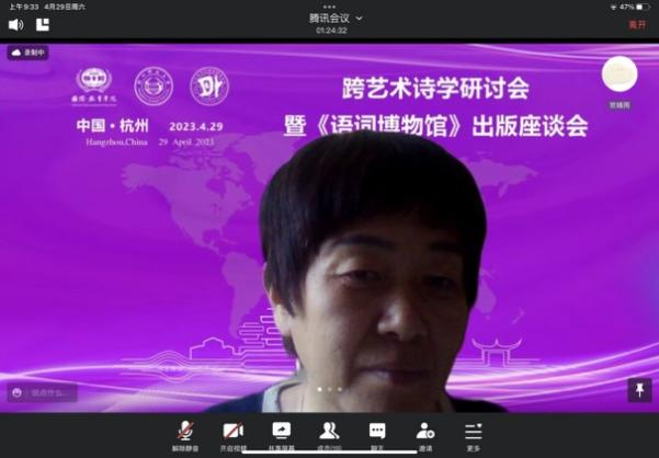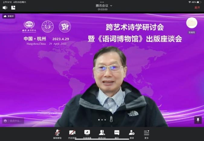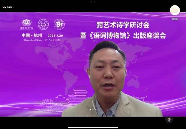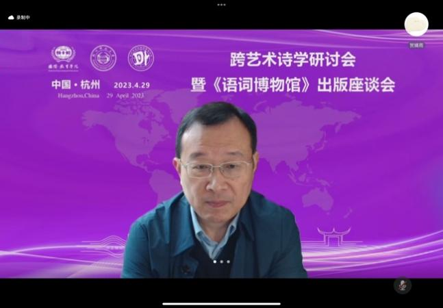 周敏:尊敬的各位专家学者、老师朋友们,在“最美人间四月天”的时节,我们线下的老师相聚在仓前校区、线上的老师们相聚在云端,隆重召开跨艺术诗学研讨会暨《语词博物馆》出版座谈会。