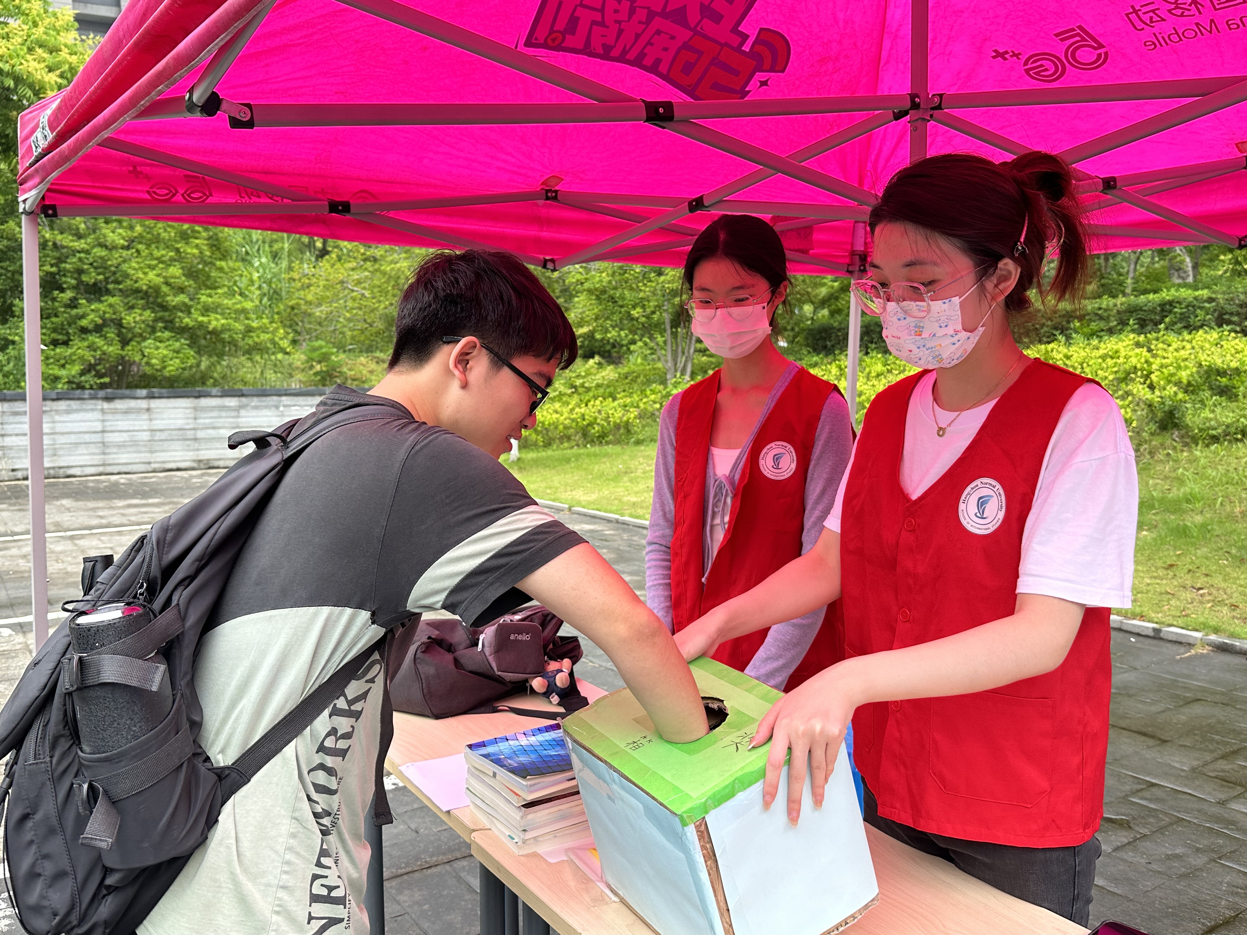 学生会在仓前校区恕园8号楼前设立了图书捐赠点。活动现场,毕业生们热情高涨,积极参与。书籍蕴含着知识,传递着爱心和希望。活动过程中,毕业班同学们纷纷捐赠出自己的闲置书籍,登记个人信息,并在书籍扉页上写下毕业寄语与对学弟学妹们的祝福。