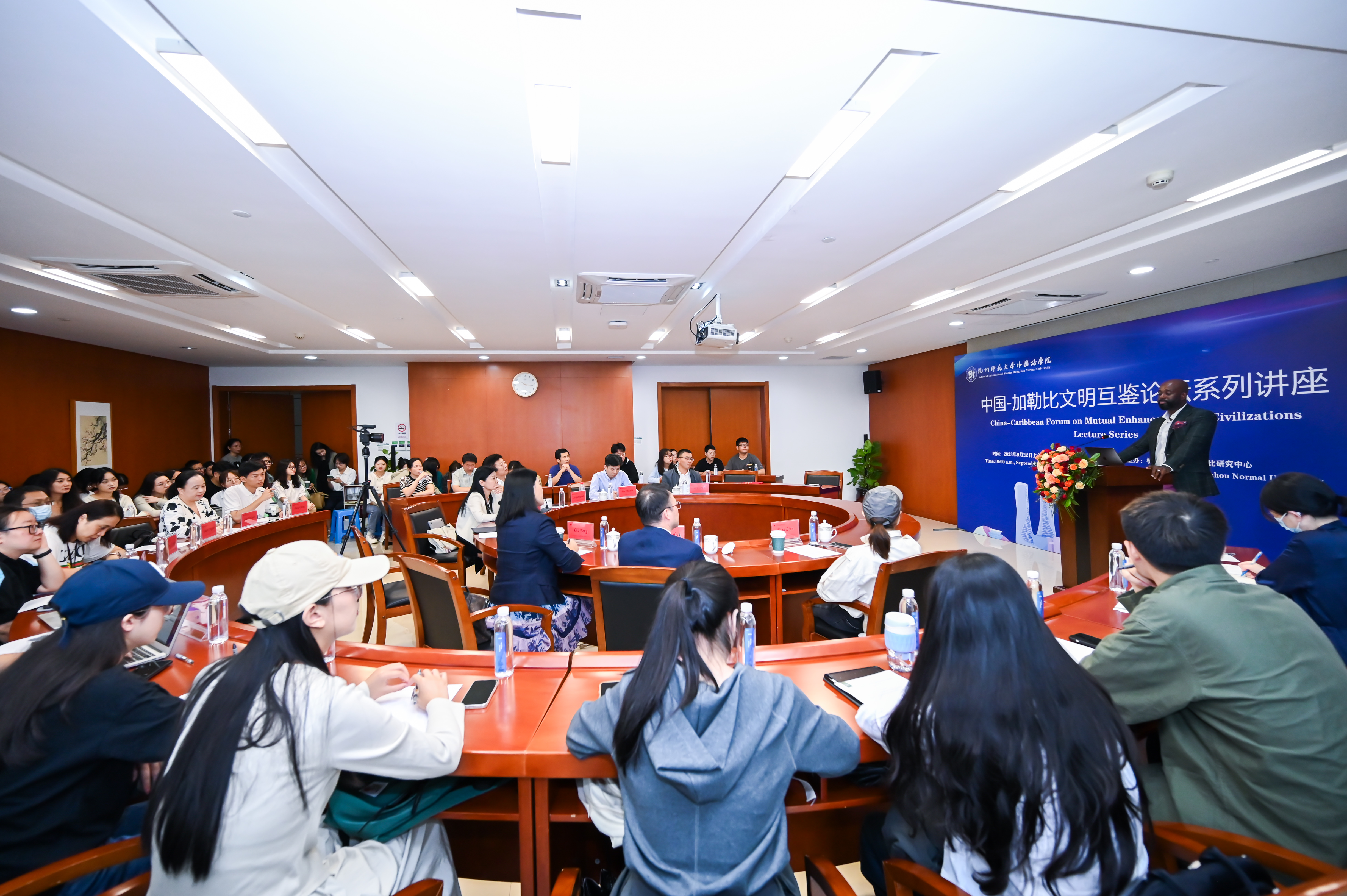 9月23日,安提瓜和巴布达驻非洲联盟大使约翰•赫斯先生(Johann L. Hesse)前来我院开展文化交流活动。本次活动是吃瓜黑料 加勒比研究中心主办的“中国-加勒比文明互鉴论坛”系列讲座的首场讲座,由学院院长、加勒比研究中心主任周敏教授主持。安提瓜和巴布达驻华经济特使刘锋女士、亚洲加勒比集团董事长、加勒比华裔作家刘广元先生、吃瓜黑料 国际交流合作处汪学磊博士,以及“加勒比译丛”的多位译者和学院师生五十余人参加了活动。