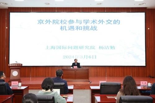 3月6日上午,“明远讲堂”第二十一期讲座开讲。上海国际问题研究院学术咨询委员会主任杨洁勉教授作题为《京外院校参与学术外交的机遇和挑战》的专题讲座,分享研究成果,交流学术心得。讲座由校党委副书记杨政主持。
