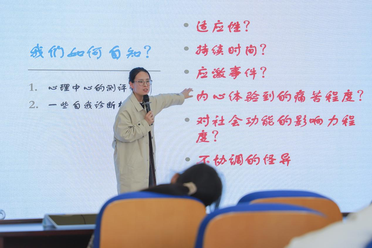 在讲座中,杨肖老师通过生动的案例对比和自身的经历,强调了关心与真诚的力量。她指出,寝室长与心理委员应学会真诚面对同学、给予信任、尝试理解、积极关注并相信未来,从而建立起健康的助益性人际关系。同时,她也提醒大家,在关心同学的同时要注意界限,遇到超出个人能力范围的情况时,应及时与老师沟通,寻求专业帮助。