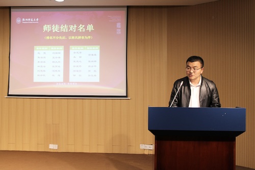 院学术委员会主任殷企平教授作为导师代表在充满感染力的讲话中勉励青年教师志存高远,把个人发展目标与学院学科发展目标相融合,立志为学院事业发展多作贡献;学会与一流学者交朋友,积极参加各类学术会议、学术讲座,多向全国乃至世界一流学者主动联系、学习交流学术心得;学会“带着脚铐跳”,平衡好事业发展与家庭生活的关系,只争朝夕务实进取。