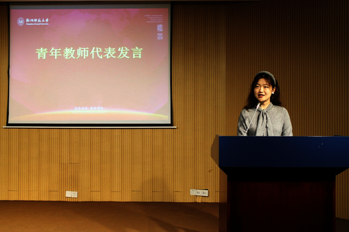 然后,徐宜修博士作为青年教师代表发言。她感谢学院和院工会为青年教师提供如此宝贵的发展平台,并代表结对青年教师承诺,将继承师父们爱岗敬业的职业操守,学习治学严谨的教学态度;虚心真诚向经验丰富的老教师们汲取养分、求教取经;在老教师的引领和指导下综合性、多维度提升个人综合素养,更好地为推进学院高质量发展贡献青年力量、守护教育荣光。