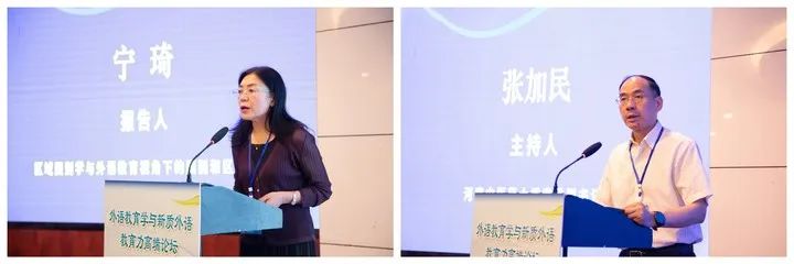 北京大学党委副书记、副校长、国家级人才宁琦教授发表了首场主旨报告,以“区域国别学与外语教育视角下的国别和区域研究”为题,从学科视角探讨交叉学科下的“区域国别学”与外语学科中的“国别和区域研究”之间的关系,以及“外语教育学”为“区域国别学”学科建设提供的空间与可能性。