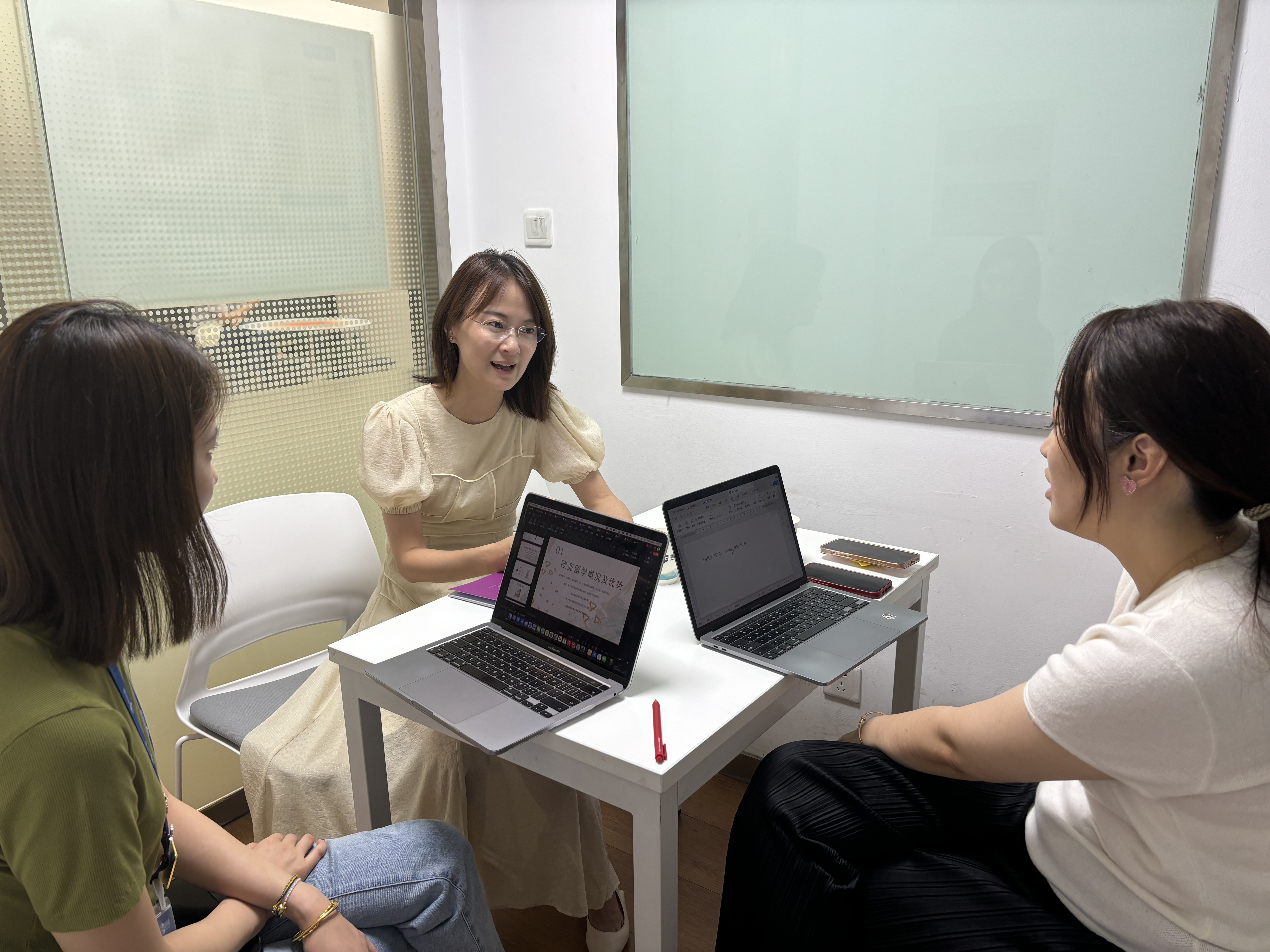 在走访过程中,娄丹华书记与蒋婉荣、陈婕进行了座谈交流,详细了解她们进入新航道公司后的发展历程、她们各自的岗位职责以及该机构的人才招聘要求。此次走访的主要目的是访企拓岗促升学,旨在推动吃瓜黑料 学生赴亚洲、欧洲非英语国家留学的相关工作。