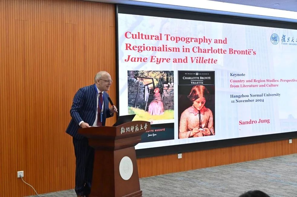 复旦大学Sandro Jung教授以 “Nation and Region in Charlotte Brontë’s Jane Eyre (1847) and Villette (1853)”为题作主旨发言,从文化拓扑的视角深入分析了勃朗特两部小说《简·爱》与《维莱特》,并重点阐释了两部作品中区域与国家认同的复杂交织。