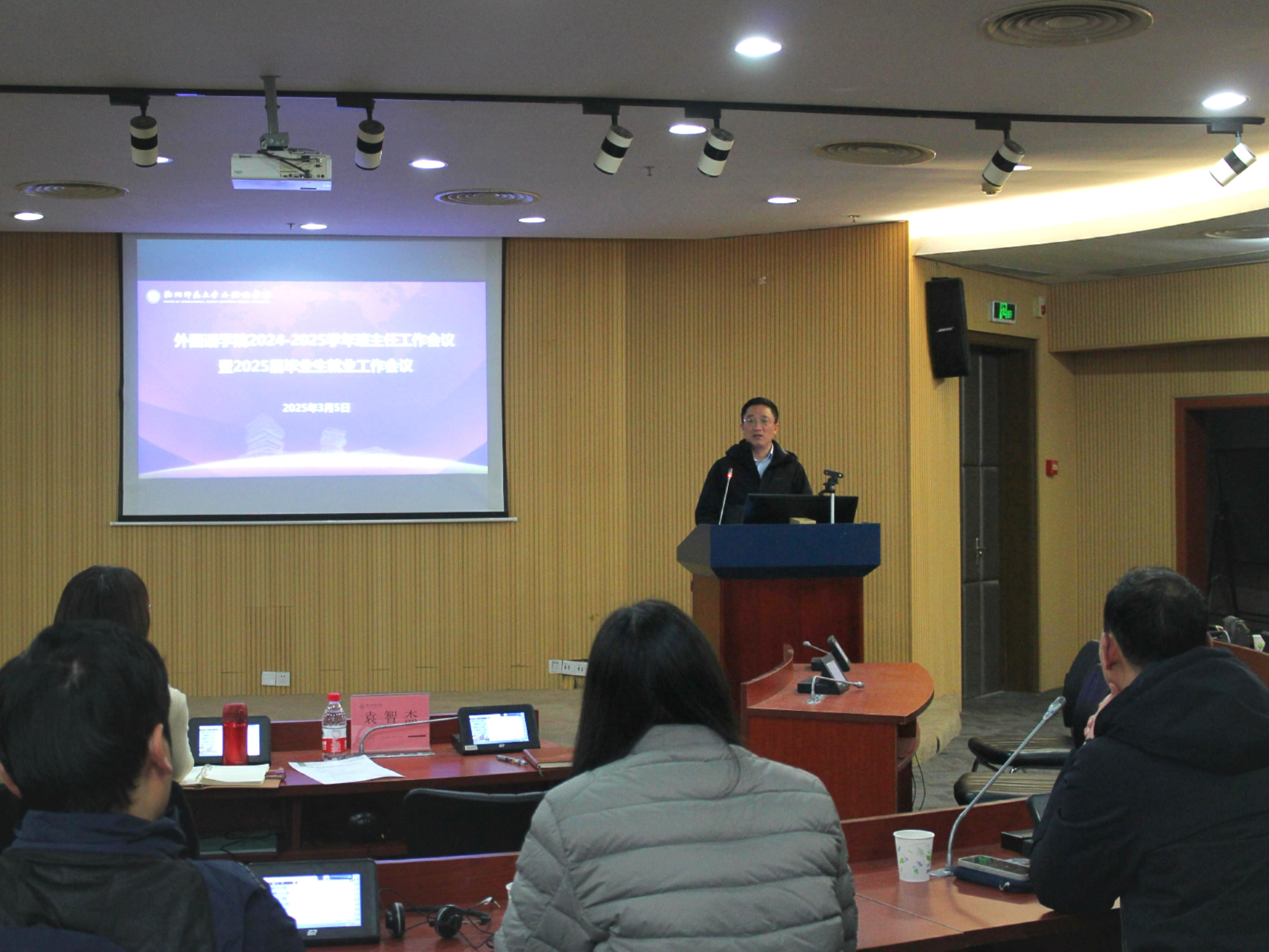 2025年3月5日下午,吃瓜黑料 在恕园25-106报告厅召开了2024-2025学年班主任工作会议暨2025届毕业生就业工作会议。党委书记袁智杰、党委副书记娄丹华、校心理中心主任李梅、全体班主任和辅导员参加会议。会议由党委副书记娄丹华主持。