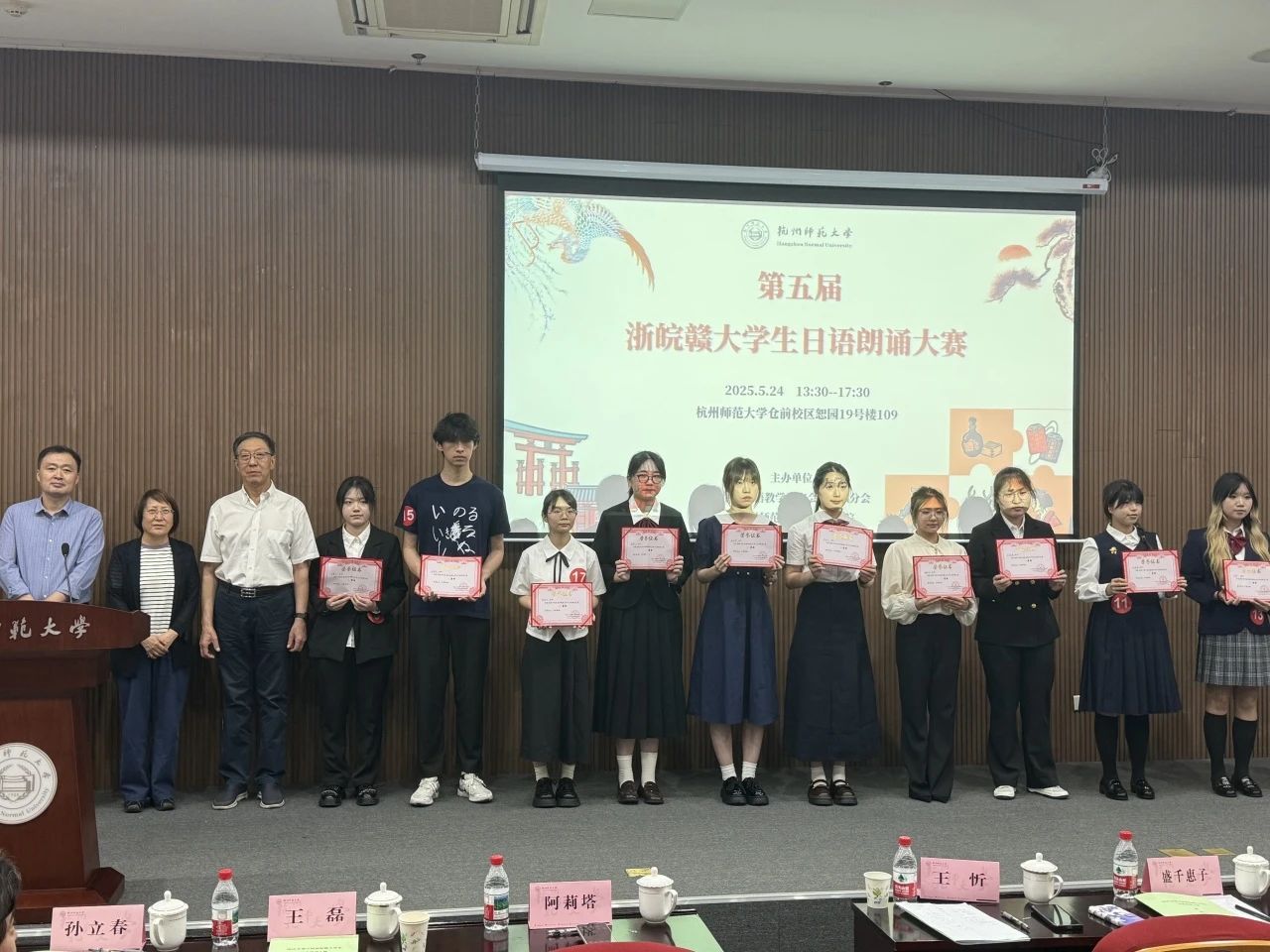 2025年5月24日,第五届浙皖赣大学生日语朗诵大赛在恕园19号楼109报告厅顺利举办。来自浙江、安徽、江西三省17所高校的17名选手同场竞技,展现日语语言魅力。