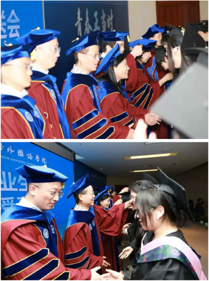 优秀本科毕业生代表经亨颐(英语)213班阳薇与优秀研究生毕业生代表2022级英语语言文学计郑澳相继发言,他们感谢母校的对他们的支持与陪伴,他们将从外院出发,带着自信与从容走向更广阔的天地。