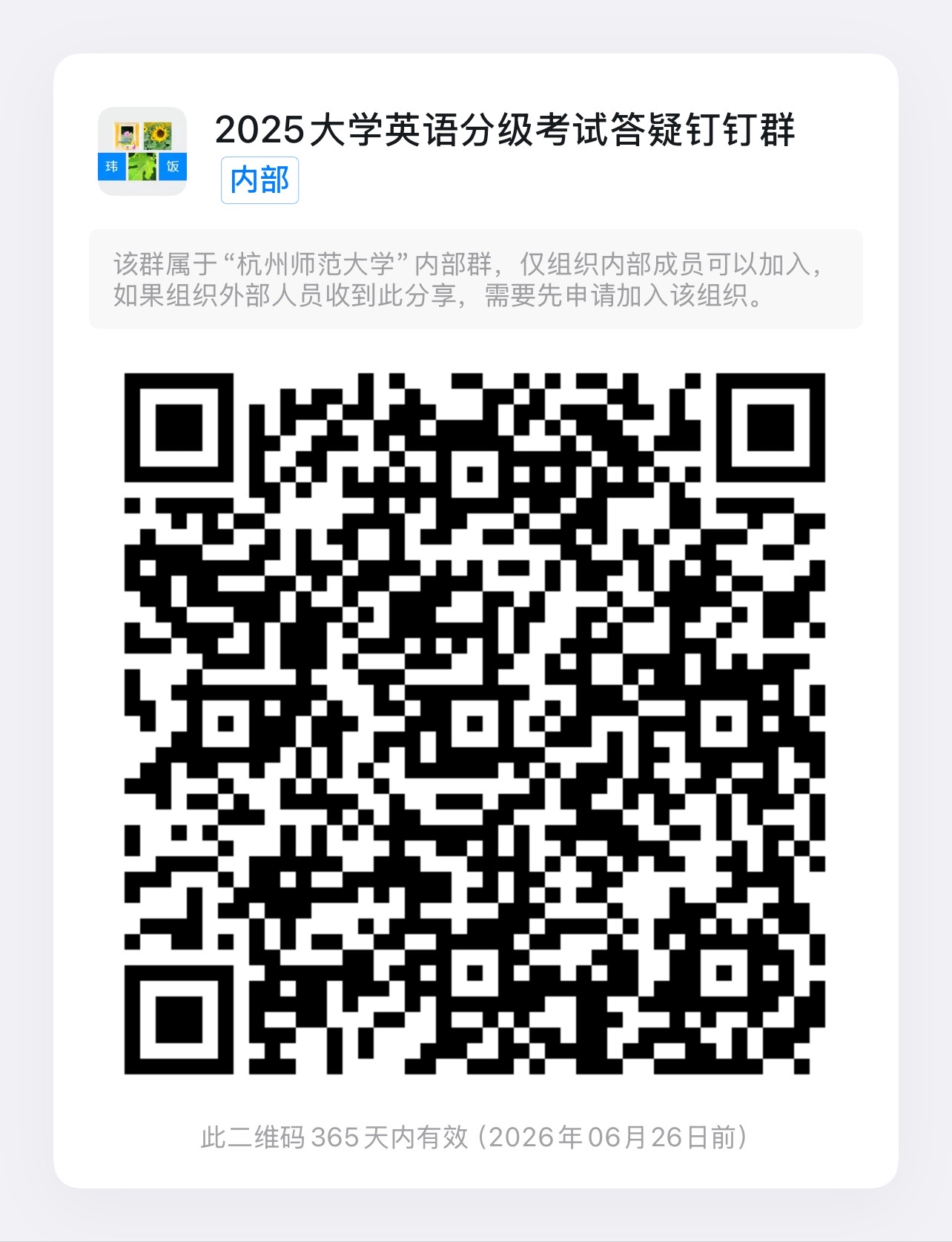 有疑问时入群:需咨询考试相关问题者,欢迎加入(用钉钉扫以上二维码即 可加入);