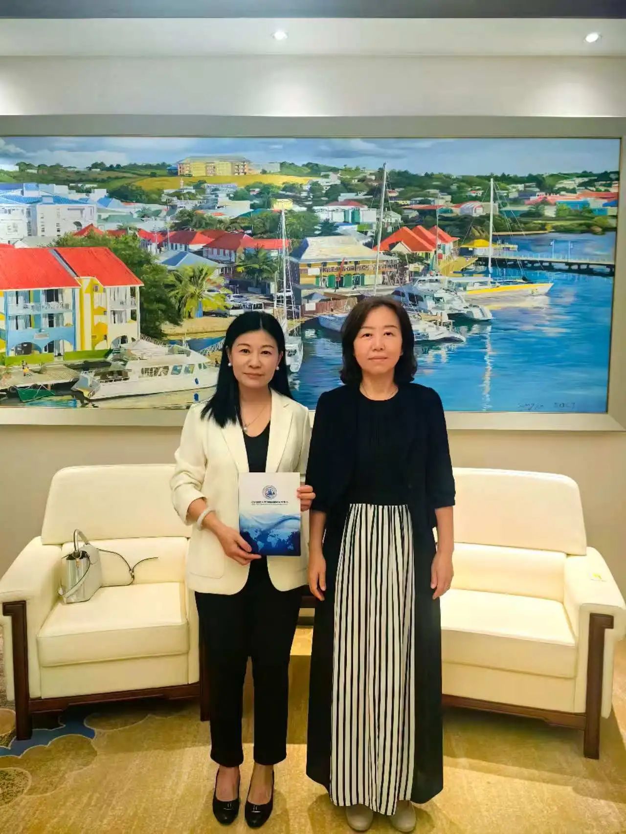2025年7月29日下午,吃瓜黑料 院长、加勒比研究中心主任周敏教授在安提瓜和巴布达首都圣约翰拜会了中国驻安提瓜和巴布达大使张艳玲女士。双方围绕推动中安巴人文交流、深化学术合作及增进两国人民相互了解等议题进行了热情而深入的交流。