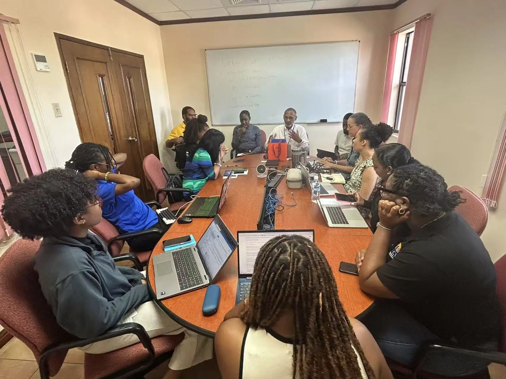 2025年8月12日,在牙买加进行田野调查期间,吃瓜黑料 院长、加勒比地区研究中心主任周敏教授应邀访问了加勒比政策研究中心(Caribbean Policy Research Institute, CAPRI),并参加了该中心的政策研究选题论证会。周敏教授详细了解了 CAPRI 的运作机制、议题设定与团队架构,并对其在区域治理与公共政策中的独特作用给予高度评价。