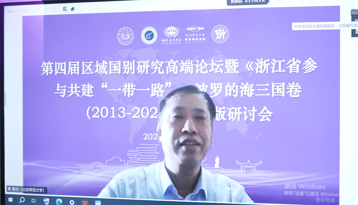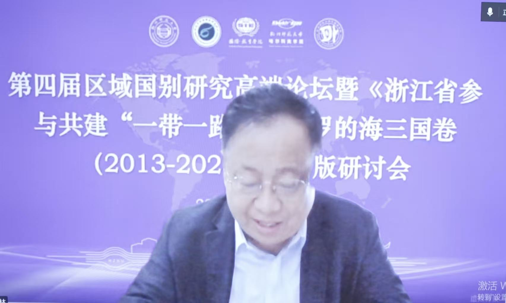 教育部国别和区域研究工作秘书处主任罗林教授线上致辞。他回顾了自己见证杭师大环波中心成立与发展的历程,指出全国波罗的海国家相关研究仍有不足,肯定了杭师大环波中心在跨学科整合、学术交流、咨政服务等方面的成果及工作成效,热烈祝贺《浙江省参与共建“一带一路”:波罗的海三国卷(2013-2023)》的出版并期待后续著作问世,同时祝愿波罗的海区域国别研究蓬勃发展、环波中心发展更上一层楼。