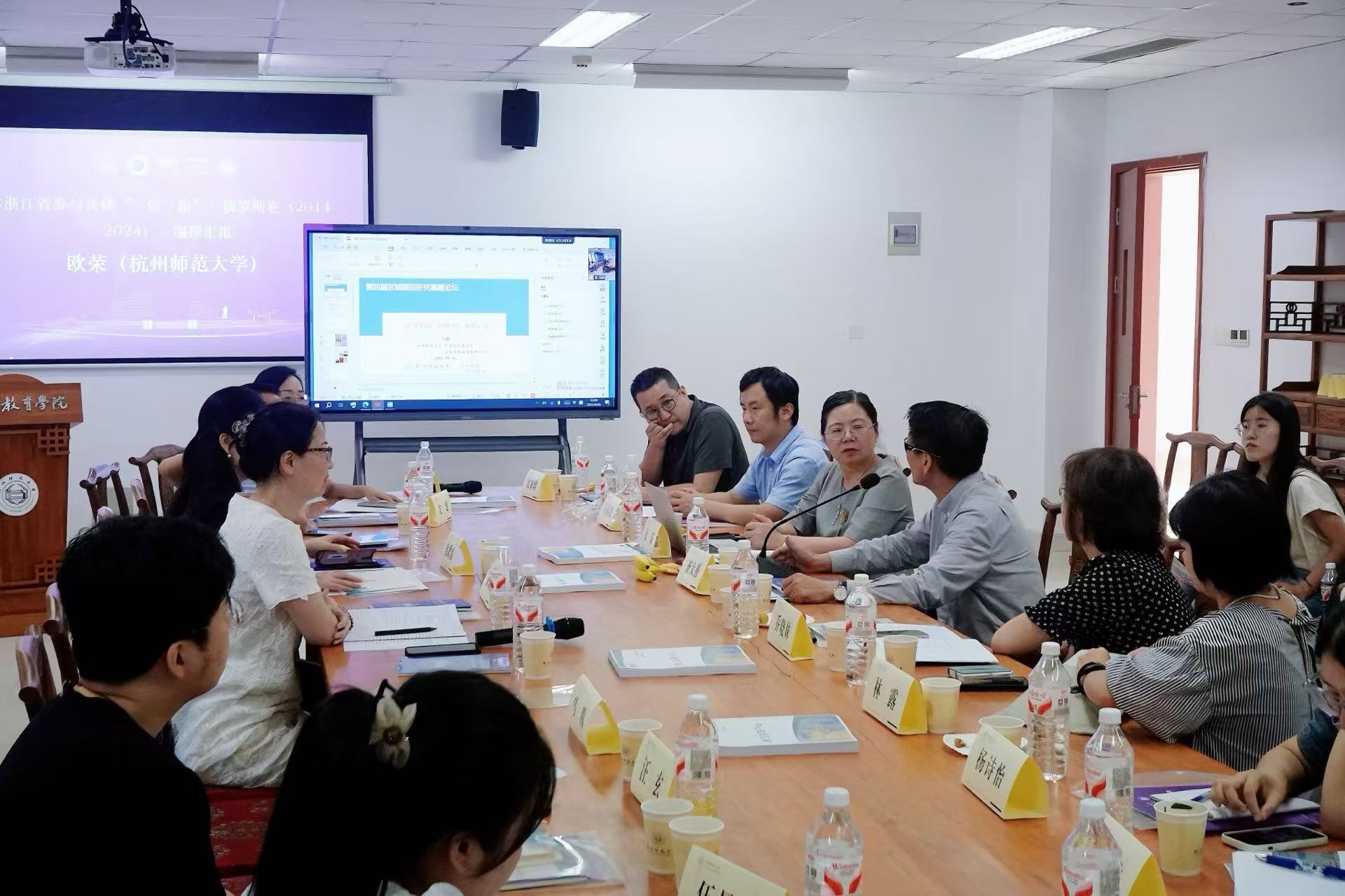 座谈会现场随后,国际教育学院-哈尔科夫学院党总支书记徐凌芸主持了新书编纂汇报环节。欧荣教授就《浙江省参与共建 “一带一路”:俄罗斯卷(2014-2024)》的编撰工作进展作详细汇报;环波中心研究员马腾副教授介绍了《波罗的海三国地理》的编写思路与整体框架设计。两本新著的有序推进,将进一步充实环波罗的海国家基础研究、拓展相关研究维度。会上,来自各单位的专家学者围绕两部书稿的学术价值、研究路径与应用前景展开热烈研讨,并积极建言献策,既为著作完善提供了多元视角,也充分彰显出与会人员对区域国别研究的高度重视,以及共同推动该领域研究向纵深发展的共同愿景。