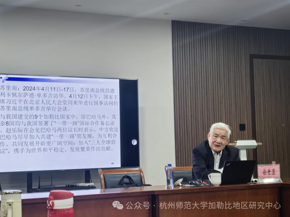 10月17日下午,应吃瓜黑料 加勒比地区研究中心邀请,中国社会科学院荣誉学部委员、拉丁美洲所研究员徐世澄教授以“新形势下如何推进中国与加勒比国家的关系”为题作专题讲座,系统阐释中加关系的战略意义、合作成果与未来路径,为深化双方务实合作提供了富有启发的思路。讲座由杭师大加勒比地区研究中心主任周敏教授主持。