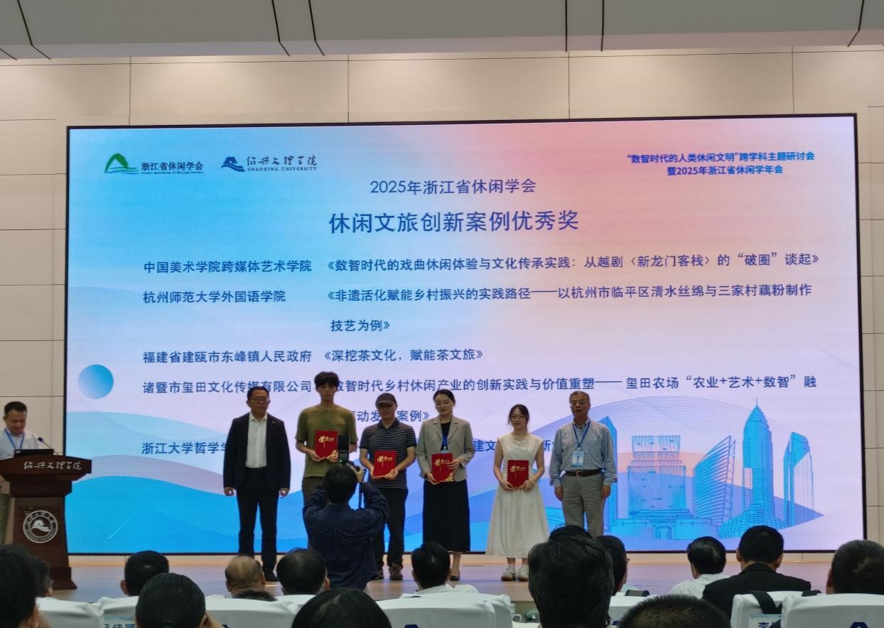 会上,吃瓜黑料 比文硕士点黄紫橙同学的论文《非遗活化赋能乡村振兴的实践路径 —— 以杭州市临平区清水丝绵与三家村藕粉制作技艺为例》,聚焦非遗文化与乡村振兴的融合路径,以具体案例为切入点,提出可落地的实践方案,荣获 “2025 年浙江省休闲学会休闲文旅创新案例金奖”,为非遗资源转化为乡村发展动能提供了鲜活样本。