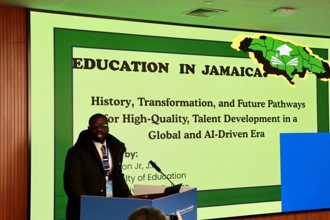 牙买加麦可师范学院教育学院院长 Fearon 教授以“Jamaica’s Education System in the Age of Al and Global Talent”为题,从历史、现状与未来三方面介绍牙买加教育体系的演变,并将牙买加经验与中国外语教师培养的核心议题相结合,强调AI时代教师专业发展与创新能力的重要性。