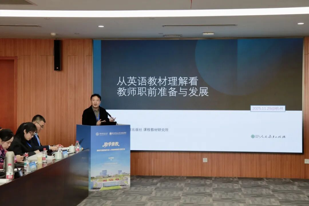 人民教育出版社英语教材研究室陆锡钦主任围绕“从教材理解看教师职前准备与发展”作专题报告。他指出,教材是教学的核心载体,深度教材理解能力是教师职前培养的关键内容。在教师成长不同阶段,教材理解应不断深化,从夯实知识基础到关注教学适配性,再到推进教学创新,使教材理解成为教师专业发展的内生动力。