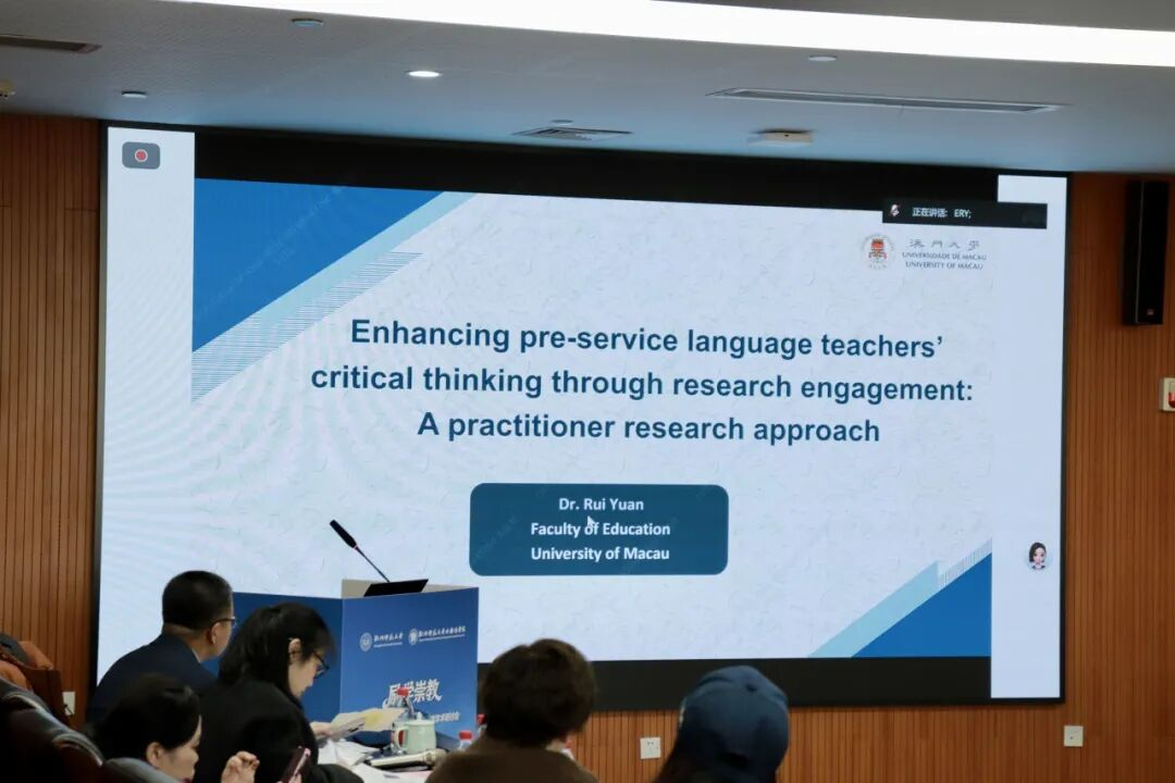 澳门大学袁睿副教授以“Enhancing Pre-service Language Teachers’ Critical Thinking through Research Engagement: A Practitioner Research Approach”为题,分享该研究如何通过“研究参与”促进职前语言教师批判性思维发展。研究表明,工作坊学习、数据分析、同伴互评等多样化研究体验能够全面提升学生的分析能力、开放性与反思性,并促进其将批判性思维迁移到语言教学实践中。