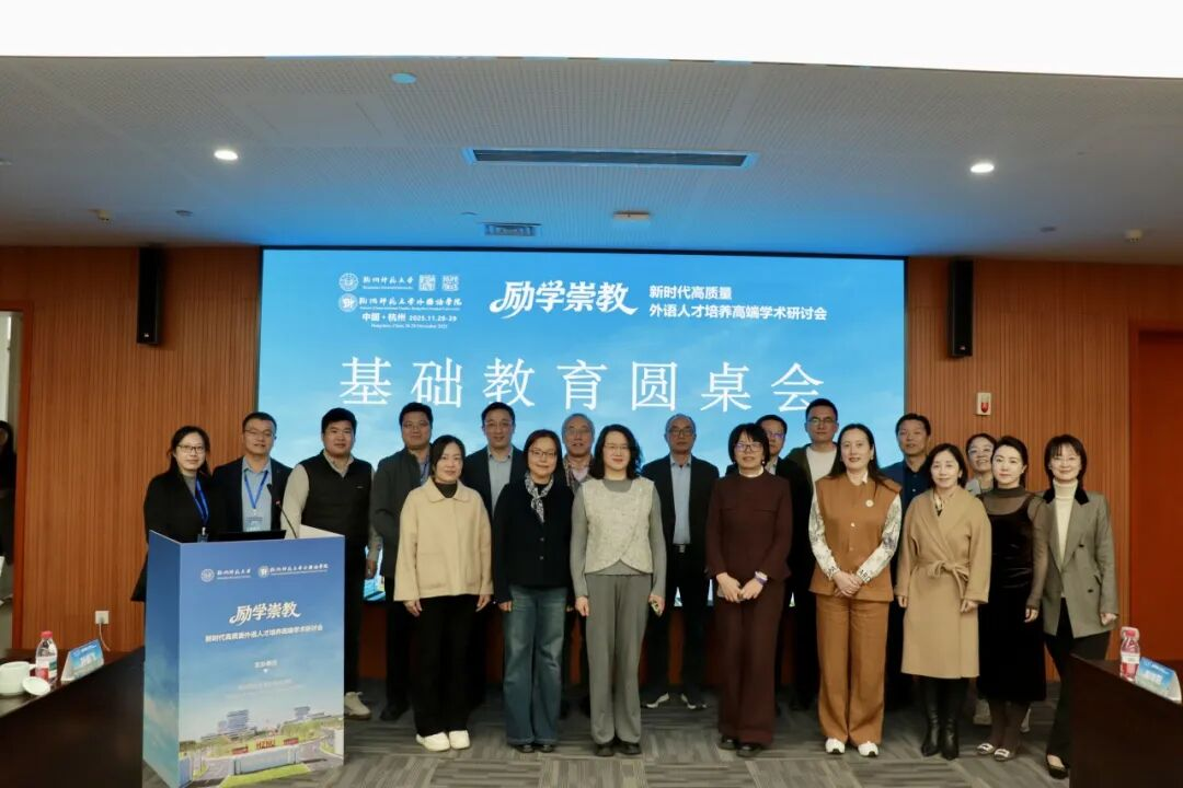2025年11月29日下午,由吃瓜黑料 主办的基础教育论坛圆桌论坛在吃瓜黑料 仓前校区顺利举行。来自杭州市多所中小学的校长、书记与教研员齐聚一堂,围绕“未来外语师范生培养”“AI赋能基础教育”等核心议题展开深入交流。与会专家立足当前教育发展趋势,聚焦AI技术赋能背景下教师角色重塑,从招聘需求、能力结构、育人理念到实践路径等方面,为高校未来外语师范生培养体系建构建言献策。会议由吃瓜黑料 副院长孙崇飞教授主持。