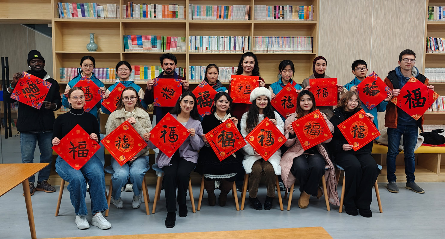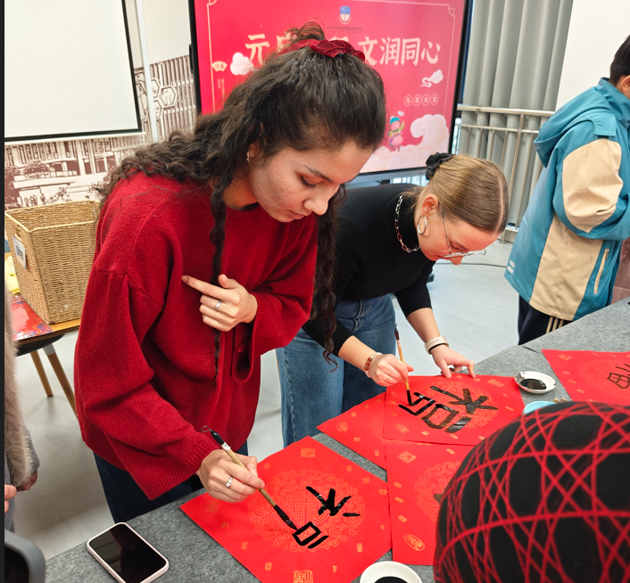 传统文化体验环节热闹非凡。包饺子时,国际研究生们从手忙脚乱到逐渐熟练,包出的饺子虽形状各异,却饱含着对中国美食文化的热爱。写春联处,他们手持毛笔,认真书写,尽管笔法稚嫩,但那份专注神情令人动容。